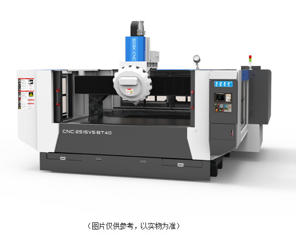 1、SDSK2515V5-BT40機型是專門為客戶量身定做的輕型龍門加工中心;定梁式結構;運動方式為Y軸工作臺前后移動,X軸左右移動,Z軸上下移動。